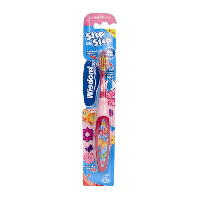 Wisdom Step by Step products help establish good brushing habits. Step by Step 6+ years is specially designed to clean the mix of milk and permanent teeth.